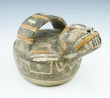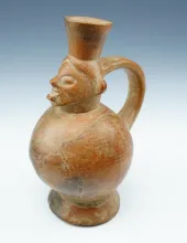 7 1/2" tall x 5 1/4" wide Lambayaque Effigy Pottery Vessel - some repaired cracks. |