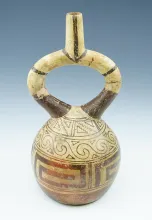 10" tall by 5" wide Moche IV Fine line Pottery Vessel - Stirrup Spout, Peru. |