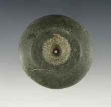 Large 2 1/8" diameter drilled Precolumbian Polished Stone Bead found in Mesoamerica. |
