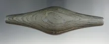 5 3/8" Adena Tablet Gorget made from green and black Banded Slate. Some engraving on surface. 2,250.00