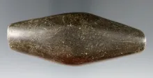 3 7/16" Woodland Gorget made from Black Slate, Perry Co., Ohio, Thorn Twp. Ex. Barnsworth, Swan. |