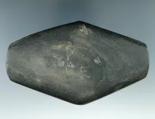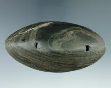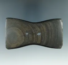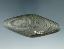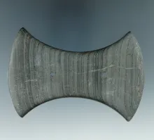 4" Adena Bi-Concave Gorget made from beautifully Banded Slate, found in Auglaize Co., Ohio. Pictured