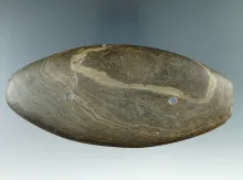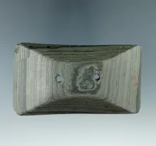 5 13/16" Adena Expanded Center Gorget made from green and black Banded Slate. Found in Clark Co., Oh