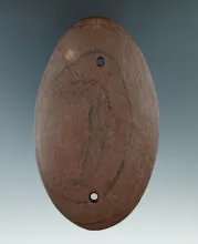 4 3/16" Glacial Kame Oval Gorget made from red and black Banded Slate, found in Darke Co., Ohio. Pic