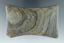 5 1/4" Glacial Kame Three Hole Coffin Gorget found in Licking Co., Ohio. Ex. Jim Hawks. OHIO 475.00