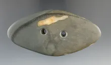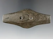 3 5/8" Adena Expanded Center Gorget made from Banded Slate, found in Licking Co., Ohio. |