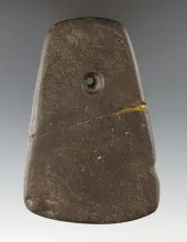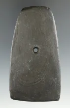 3 3/8" Hopewell Trapezoidal Pendant made from gray and black Banded Slate, found in Perry Co., Ohio.