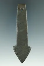 3 13/16" Glacial Kame Teardrop Pendant salvaged from a gorget found in Sand Lake, Michigan. Ex. Mood |