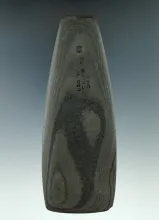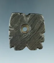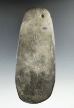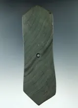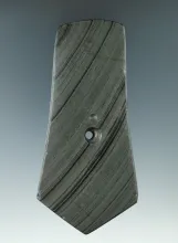 4 5/16" Hopewell Pentagonal Pendant made from gray and black Banded Slate, found in Preble Co., Ohio