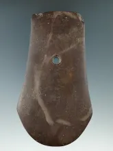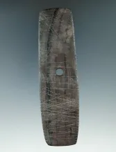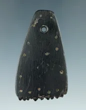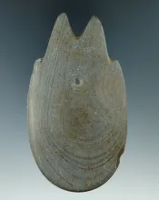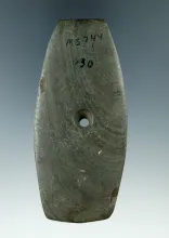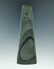4 5/16" Adena Bell Pendant made from green and black Banded Slate, found in Lorain Co., Ohio. Pictur