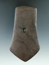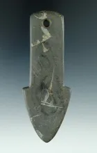 5 9/16" Adena Trapezoidal Pendant made from green and black Mottled Slate, found in Fayette Co., Ohi