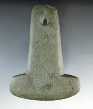 4 13/16" Adena Keyhole Pendant made from Mottled Slate. Found in Indiana. Ex. Dave Root INDIANA 225.00