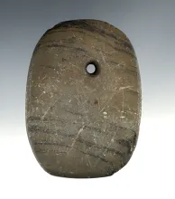 3 1/8" Hopewell Bi-Concave Pendant made from green and black Banded Slate. Ex. Cull Family. 325.00
