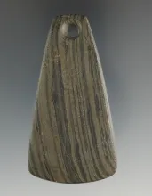 4 1/4" Adena Keyhole Pendant made from green and black Banded Slate, found in Hardin Co., Ohio. Pict