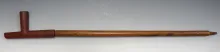 6 1/4" Plains style Catlinite Pipe that is heavily patinated with the original 20" wood stem. |