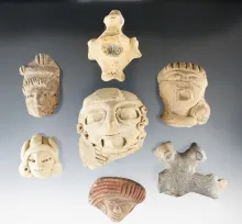 Set of 7 Pre-Columbian assorted Pottery pieces. The largest is 2 1/2". |