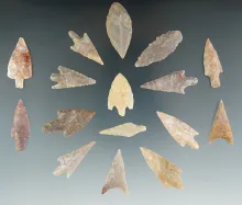 16 nicely flaked Neolithic Points found in the northern Sahara region of Africa. Largest is 1 1/2". 45.00