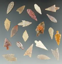Set of 20 assorted African Neolithic Arrowheads found in the northern Sahara Desert region |