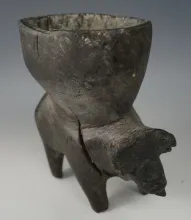 Unique hand carved 5" Wide x 5 1/2" Tall Spanish Colonial period bull effigy bowl. |