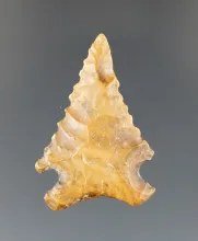 1 7/16" nicely serrated point made from attractive banded flint found in Illinois. |