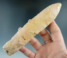 5 9/16" Paleo Lanceolate found in Illinois made from attractive pink and cream flint. |