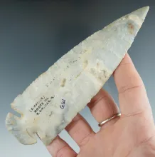 4" large and nice Thebes that is thin and very well flaked found in Fulton Co., Illinois. Ex. Beaver |