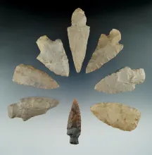 Group of Eight assorted Woodland Flaked artifacts found in Kentucky by Trency Scroggins. |