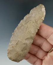 5 1/4" green banded slate Elliptical Bar Atlatl Weight in perfect condition found in Ontario Canada.