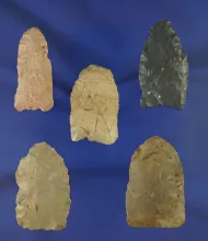 Set of five lanceolate points found in Kentucky, a couple are Paleo. Largest is 1 3/4". |