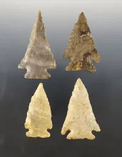 Set of 4 Cornernotched points found in the Ohio/Kentucky area. The largest is 2 1/2". |