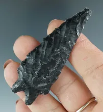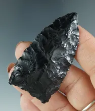 Excellent flaking on this 2 1/4" Obsidian weak stemmed Knife found in Oregon. |