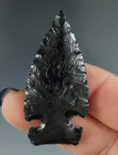 1 15/16" Cascade with unique side notches made from semi-translucent obsidian - Lake Co.,Oregon. |