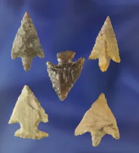 Set of five assorted arrowheads found near the Columbia River, largest is 1". |