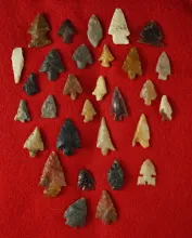 Large group of assorted small arrowheads in various conditions found near the Columbia River. |