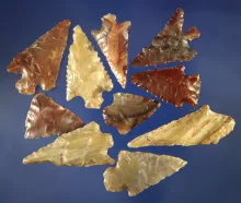 Set of 10 assorted arrowheads, largest is 1 and 7/8". Columbia River. |