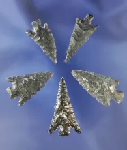 Set of five obsidian arrowheads found near Ft. Rock Oregon. Largest is 1 1/16". |