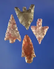 Set of four assorted arrowheads, largest is 1 1/16". Columbia River. |