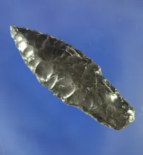 2 3/8" nicely stemmed paleo Parman made from obsidian found in Oregon by Syl Egan. |