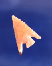 1 3/8" highly serrated pink agate arrowhead found in Lynn County Oregon by Robert Howard. OREGON