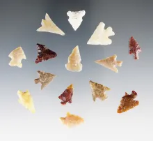 Set of 14 Assorted Columbia River Arrowheads, largest is 1 1/16". OREGON 50.00