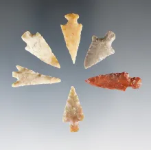 Set of 6 Assorted Columbia River Arrowheads, largest is 1 1/8". OREGON 60.00