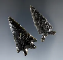 Pair of Obsidian Points including an Elko Eared and a Pinto Basin found in Lake Co., Oregon. OREGON 30.00