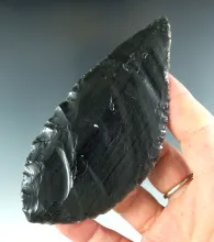 4 3/8" Early Leaf Knife made from black Obsidian. Found in Harney Co., Oregon. Rogers COA. |