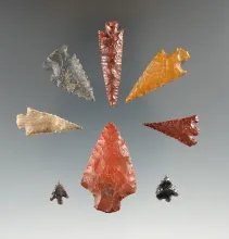 Set of 8 nice arrowheads found in the Klickitat Co., Washington, largest is 1 7/16". WASHINGTON 95.00