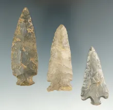 Set of three assorted points dug by Ernie and Dorothy Good in the 1950's in Watts Cave, Kentucky. KENTUCKY 125.00