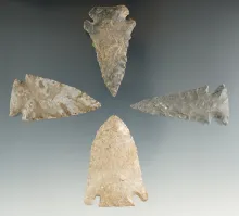 Set of four well styled Kentucky arrowheads, largest is 1 15/16". |