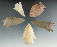 Set of four well styled arrowheads found in Kentucky. Largest is 2 5/8". |