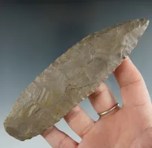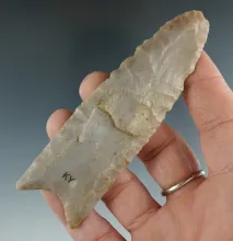Very unique 1 3/16" grooved artifact with engraved "Turkey tracks" on the surface. Fox Field site, K