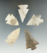 Set of five nicely styled Kentucky arrowheads, in good condition. Largest is 2". Ex. Henry English. KENTUCKY 90.00