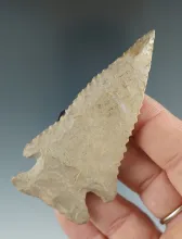 Exceptional serrations! Very nicely flaked 2" Pine Tree point found in Lincoln Co.,Kentucky. |